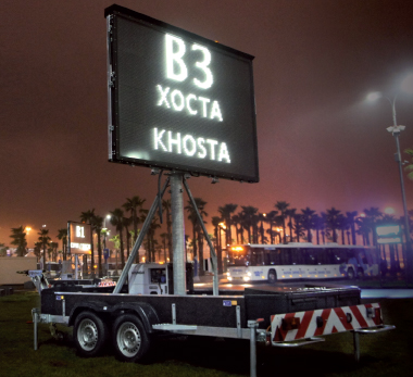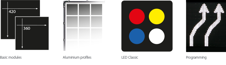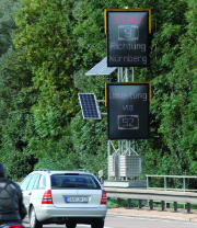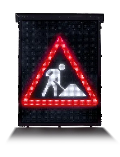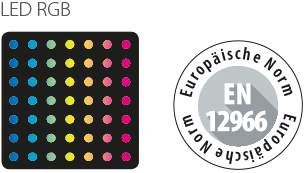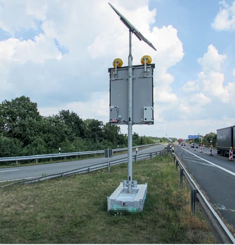 Perfect for traffic management at events: All LED variable message signs from the Nissen VarioSign LED system are also available in the RGB version with 256 colours. Here, a lens technology patented by Nissen is utilised, allowing for a 100 percent colour display. Just like the Classic version, the LED variable message signs with RGB technology can display any signs and texts, and, in addition, they can be freely programmed